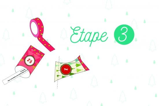 Au-dessus de chaque numéro, fermez les extrémités supérieures avec du ruban adhésif coloré (n’hésitez pas à varier les motifs).