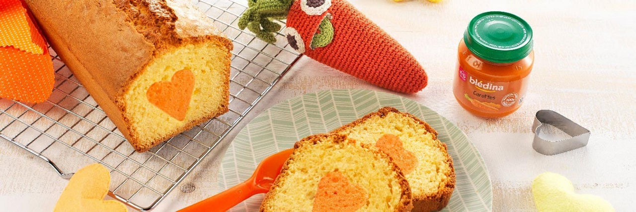 • Servez une part de cake accompagnée d'une purée de carottes ou selon les capacités de mastication de votre enfant, d'une salade de carottes râpées.