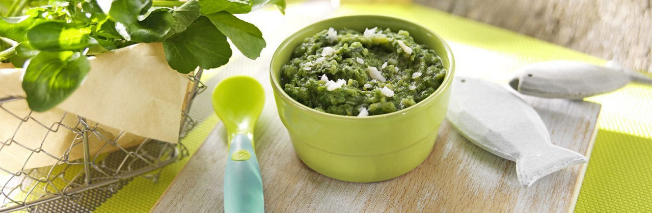 4. À la fin de la cuisson, mixez le cresson et la pomme de terre en laissant de petits morceaux fondants.