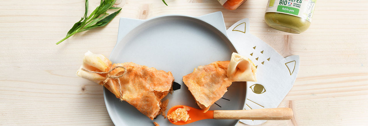 6. Dans une assiette adaptée, servez le croustillant et régalez bébé après avoir vérifié la température et ajouté un filet d’un mélange d’huiles.