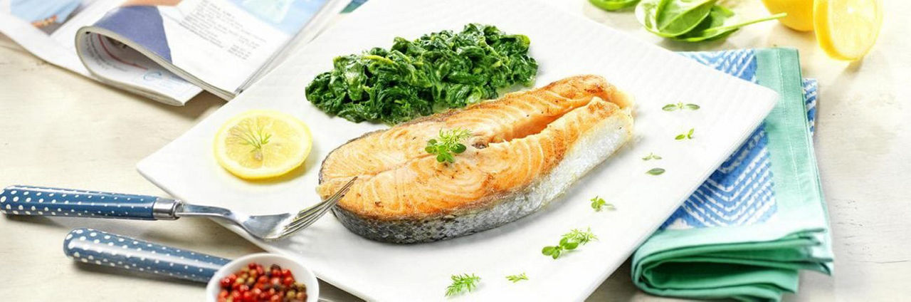 4- Dans l’assiette, disposez la darne au centre et entourez-le d’épinards à la crème.