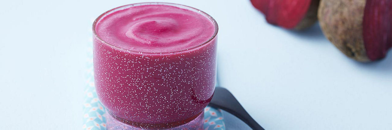 2- Mixez la betterave cuite jusqu’à l’obtention d’une texture extrêmement lisse.