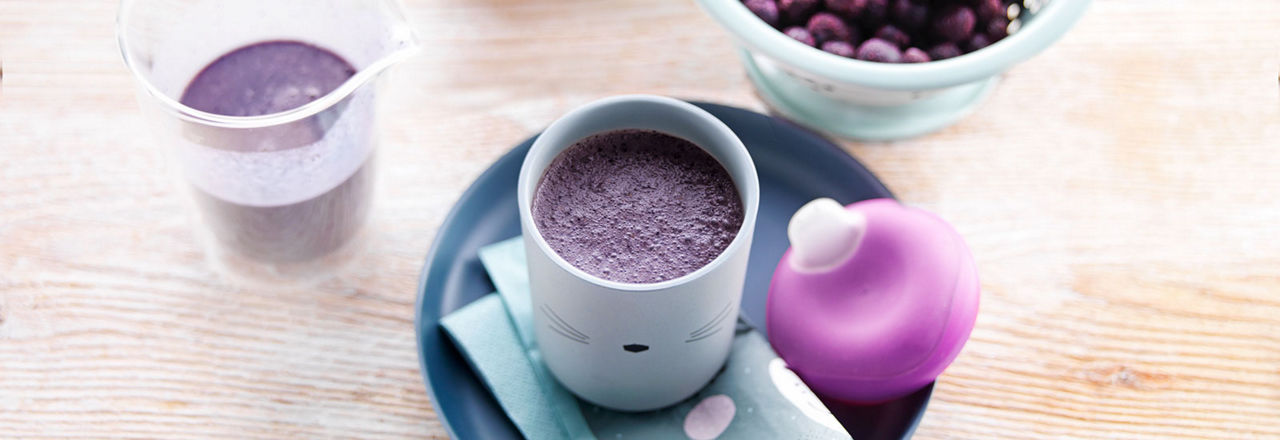 2. Rincez, épluchez et coupez la banane. Dans le mixeur, déposez les myrtilles surgelées et la banane en morceaux. Mixez une première fois et ajoutez le Blédilait 2ème âge et mixez de nouveau.
