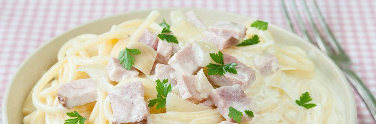 3- Quand les pâtes sont cuites, égouttez-les et versez-les dans la casserole contenant le jambon et la crème. Servez sans tarder.