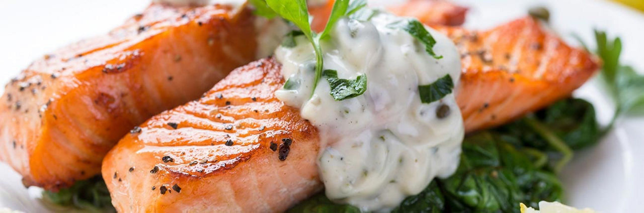 4- Quand le saumon est bien cuit, servez les épinards et placez le pavé de saumon dessus.