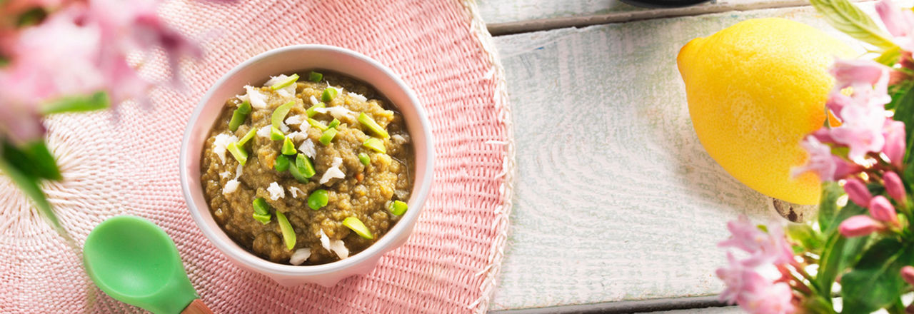 • Selon le degré d'acceptation des morceaux par bébé, vous pouvez écraser les fèves à la fourchette avant de les poser sur la purée.