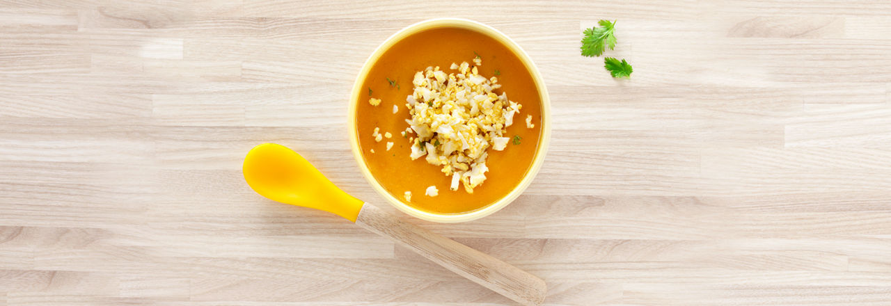 • Vous pouvez compléter le repas avec une purée de fruits ou un fruit cru en petits morceaux fondants, en fonction de l'âge de votre bébé