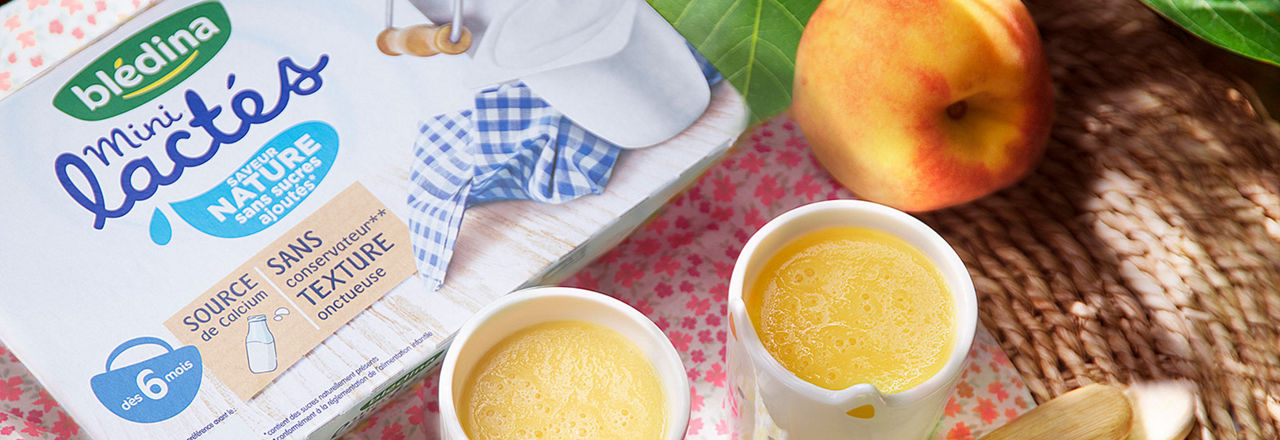 2. Mixez ensemble la pêche et le mini lacté nature sans sucres.
