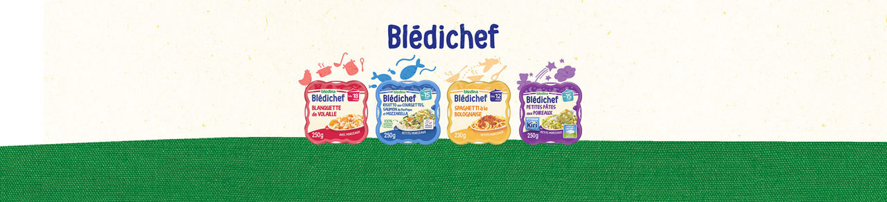 Blédichef®, c’est tout le plaisir des plats de la cuisine française traditionnelle ou de la cuisine du monde, revisités par notre chef, afin de les adapter aux besoins* des tout-petits. Faites découvrir à votre bébé le petit plat idéal pour lui apprendre à manger tout seul, comme un grand !