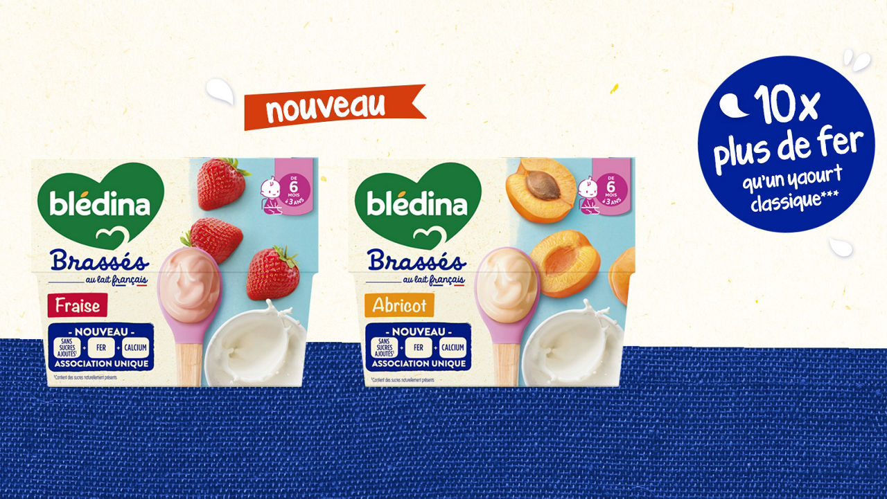Saviez-vous que bébé à 8 mois, a besoin de 10x plus de fer4 qu’un adulte ? C’est pourquoi les Brassés blédina contiennent 6 à 10 fois plus de fer qu’un yaourt classique3. Le fer contribue à un développement cognitif normal de bébé. Il est important pour votre bébé d’avoir une alimentation variée et équilibrée et un mode de vie sain.
