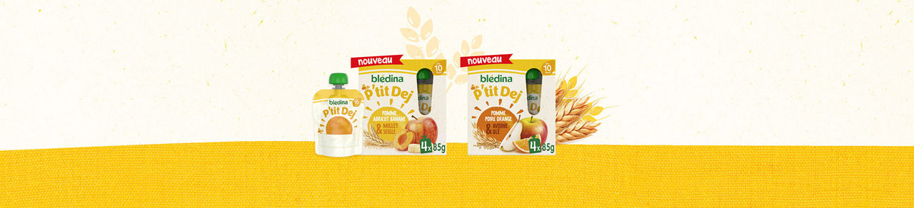 Pour un petit-déjeuner équilibré lors des matins pressés, proposez à bébé une gourde P’tit Dej en complément de son lait habituel. Avec de bons fruits et une touche de céréales, nos gourdes P’tit Dej sont riches en fibres et en vitamine C.