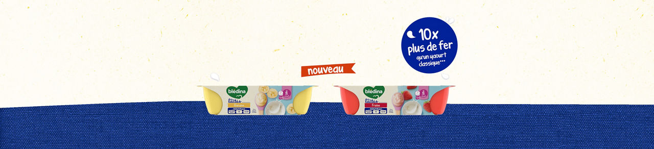 Saviez-vous que bébé à 8 mois, a besoin de 10x plus de fer4 qu’un adulte ? C’est pourquoi les Mini Lactés blédina contiennent 6 à 10 fois plus de fer qu’un yaourt classique3. Le fer contribue à un développement cognitif normal de bébé. Il est important pour votre bébé d’avoir une alimentation variée et équilibrée et un mode de vie sain.