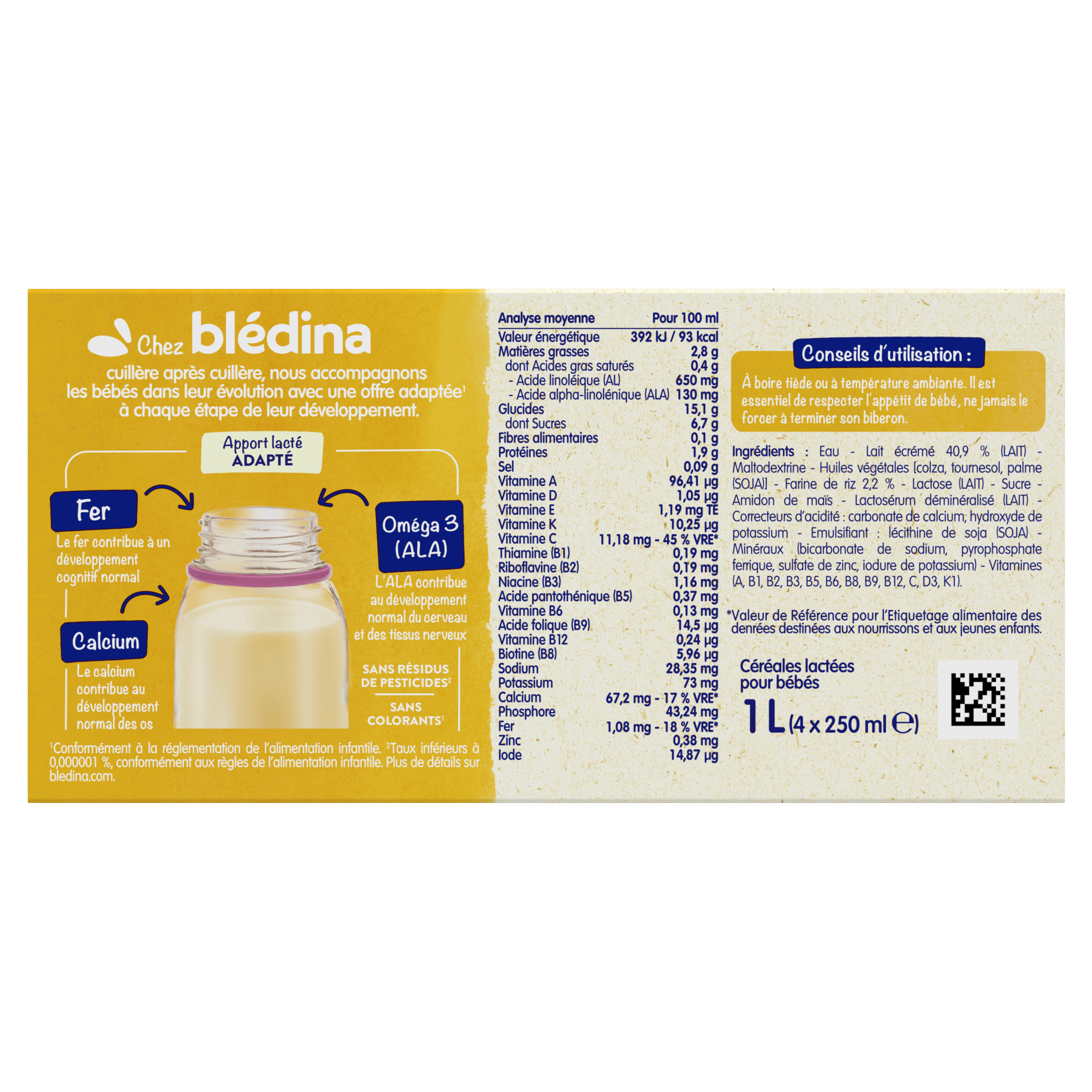 Blédidej, ce sont de délicieuses céréales lactées au goût tout doux et à la texture onctueuse pour bien commencer la journée ! Découvrez Blédidej Céréales dès 6 mois, pour un petit-déjeuner complet et équilibré à la saveur gourmandes des céréales.   Un format brique pratique à emmener partout 1 brique = 1 biberon Lot de 3 packs contenant chacun 4 briques de 250mL.
