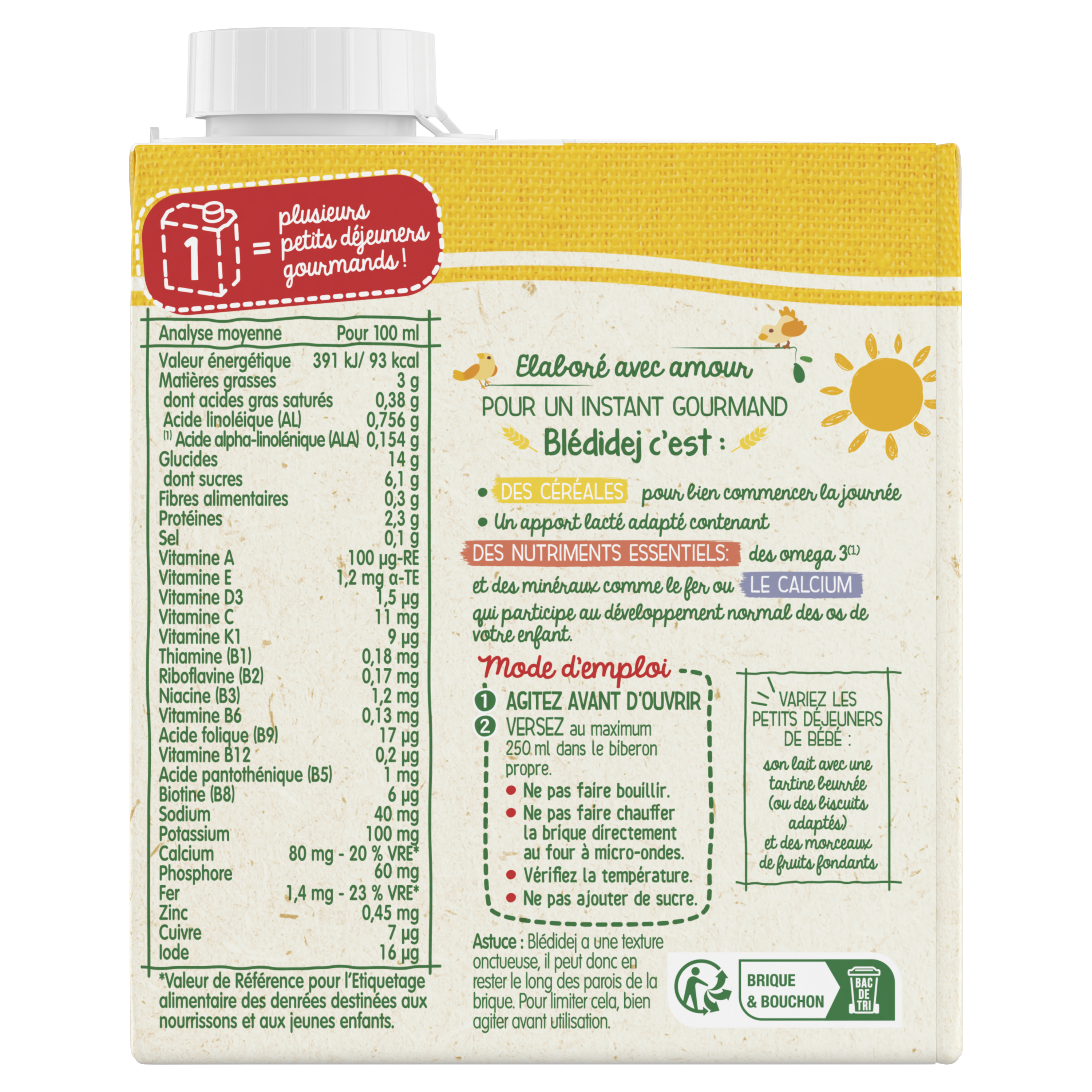 Blédidej, ce sont de délicieuses céréales lactées au goût tout doux et à la texture onctueuse pour bien commencer la journée ! Découvrez Blédidej Délice Biscuité dès 12 mois, pour un petit-déjeuner complet et équilibré alliant les saveurs gourmandes du biscuit et de la vanille.
