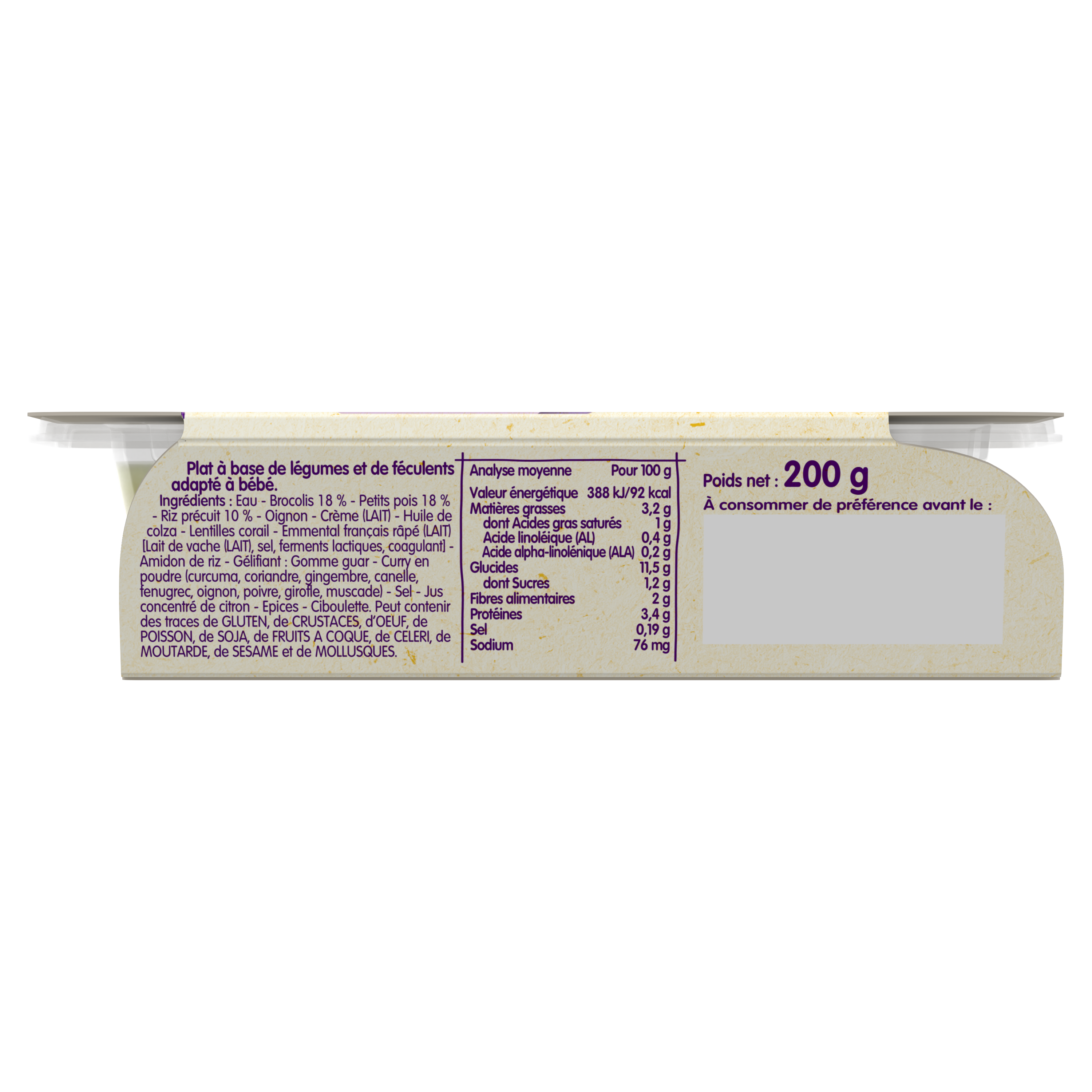Découvrez les petits plats blédina MORCEAUX À DEVORER de 15 mois à 3 ans (se référer ci-dessous aux détails des informations du produit pour savoir si bébé est prêt). Carottes Brocolis, Petits Pois & Riz au curry douxUn plat complet pour le soir composé d'ingrédients faciles à reconnaître pour apprendre à votre bébé à manger progressivement comme un grand.Aidez le à reconnaitre tous les bons ingrédients de son assiette !Ce lot contient 3 assiettes de 200g chacun