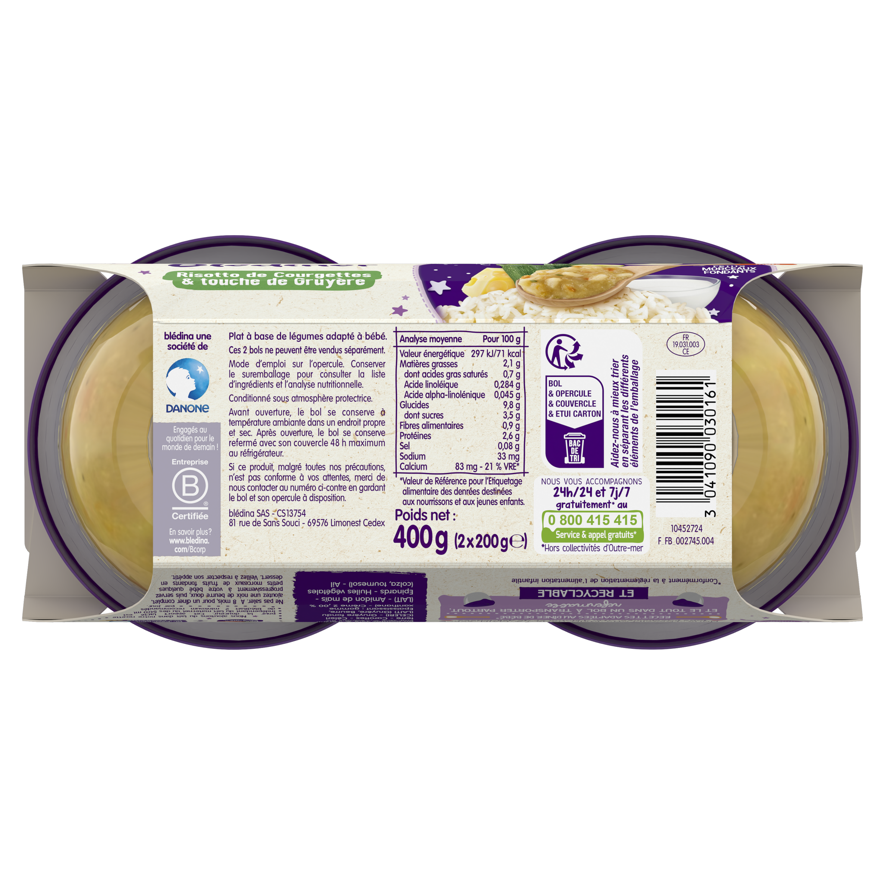 Blédîner - Risotto de Courgettes et touche de Gruyère - Lot x3