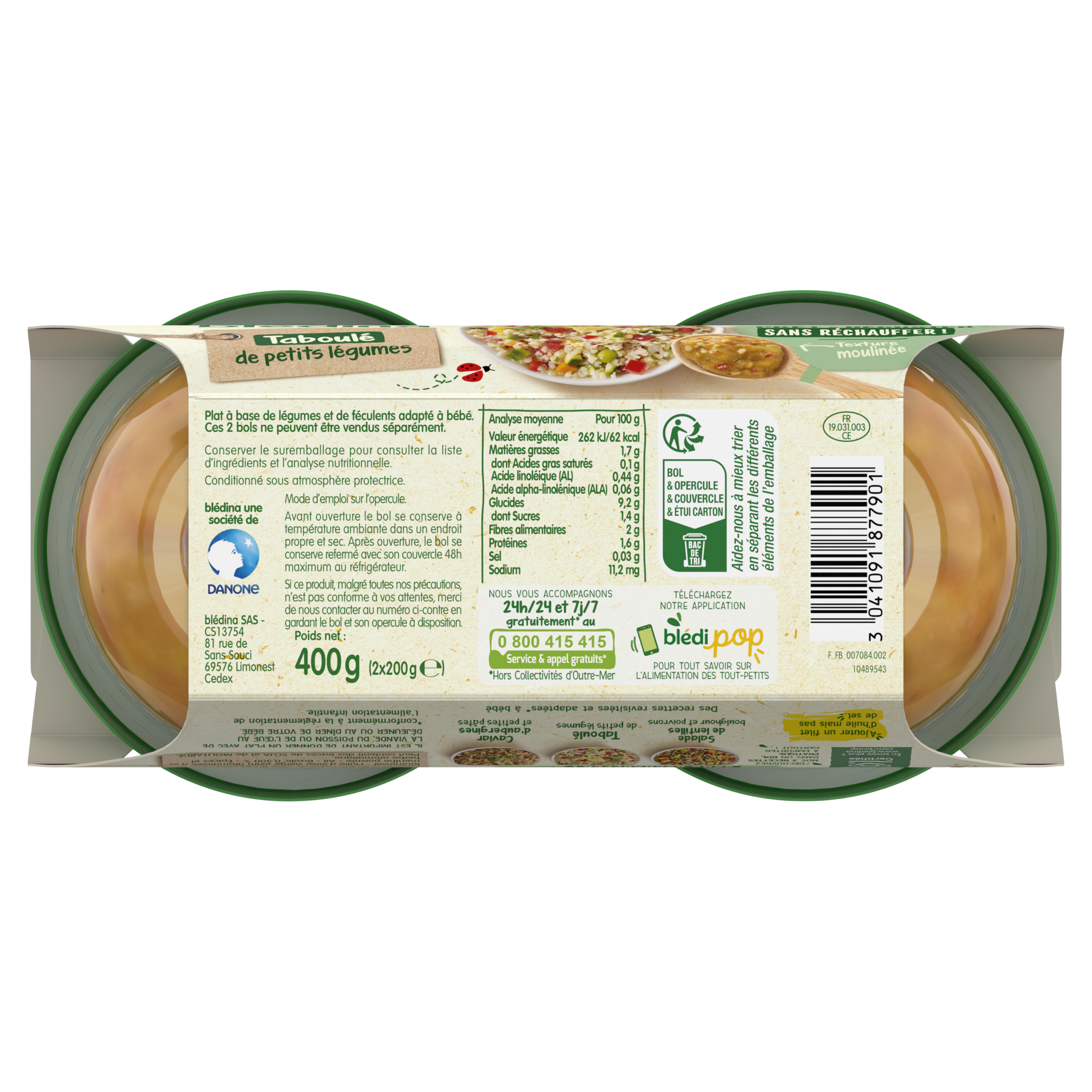 Désormais les bols Blédina sont sans couvercle ! Et non sans raison, car cela permet à Blédina d’éviter l’utilisation de plus de 130 tonnes de plastique par an**. Cela représente une réduction de 35,6% de plastique sur chacun de nos bols ! Ce lot contient 6 bols de 200g chacun