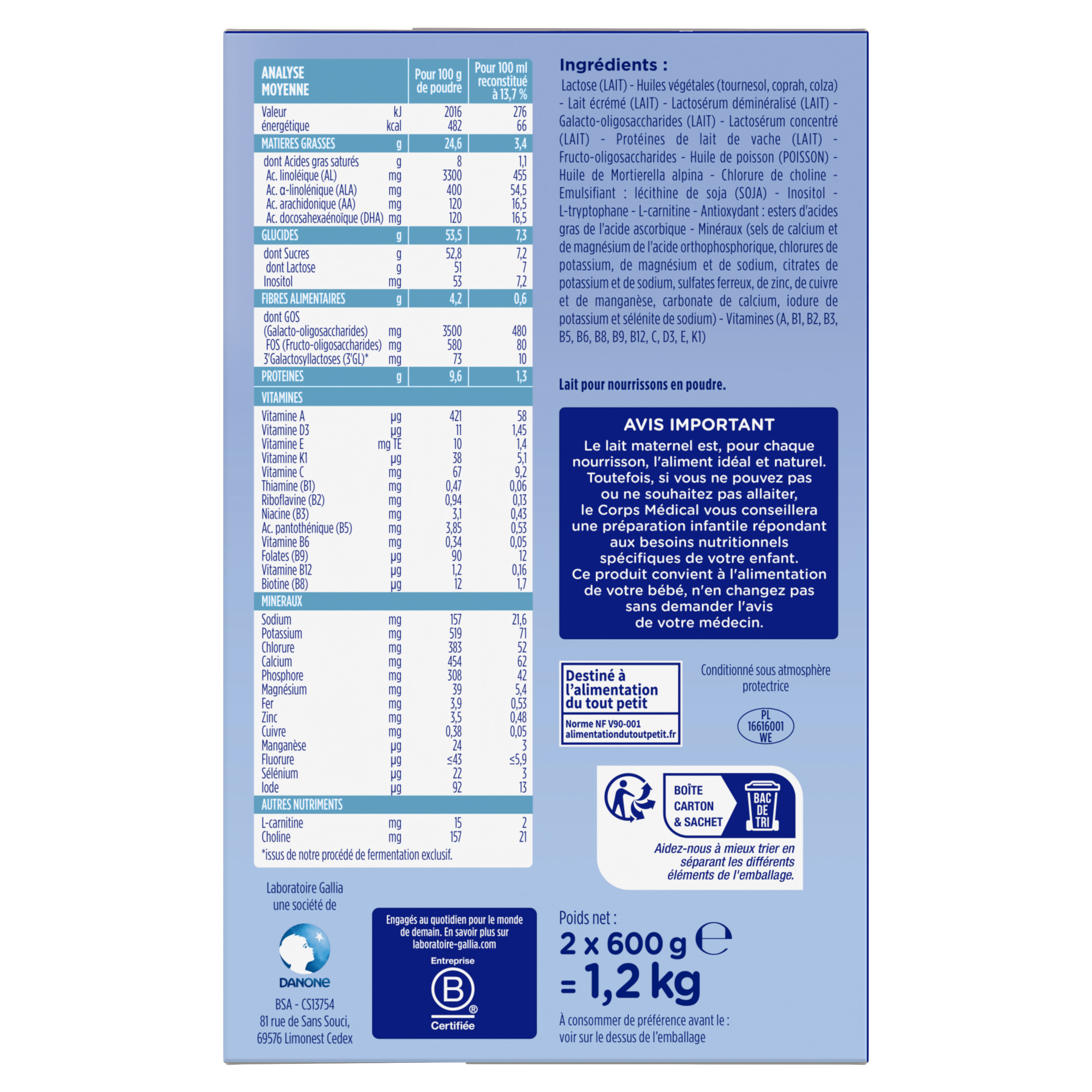 Avis Important : Le lait maternel est, pour chaque nourrisson, l’aliment idéal et naturel.