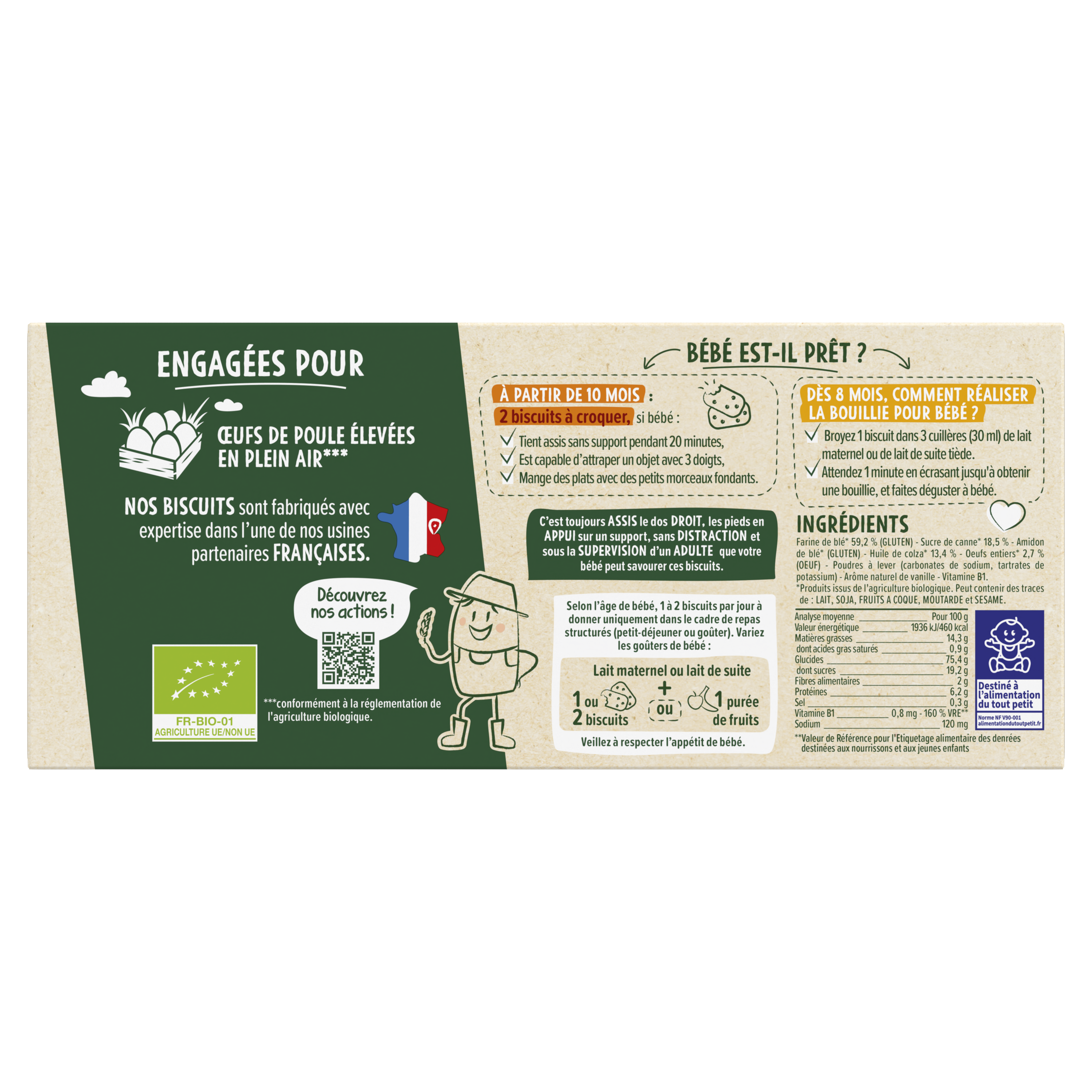 Découvrez Mon Premier Biscuit Bio – Les Récoltes Bio de Blédina : des biscuits français et spécialement conçus pour bébé dès 8/10 mois (se référer ci-dessous aux détails des informations du produit pour savoir si bébé est prêt) avec leur texture sablée et adaptée aux 1ères dents. Texture sablée, croustillante puis fondante en bouche Forme idéale pour ses petites mains Format pratique en sachet à emporter partout Dès 8 mois en bouillie et 10 mois à croquer Lot de 3 packs contenant chacun 10 sachets de 2 biscuits.
