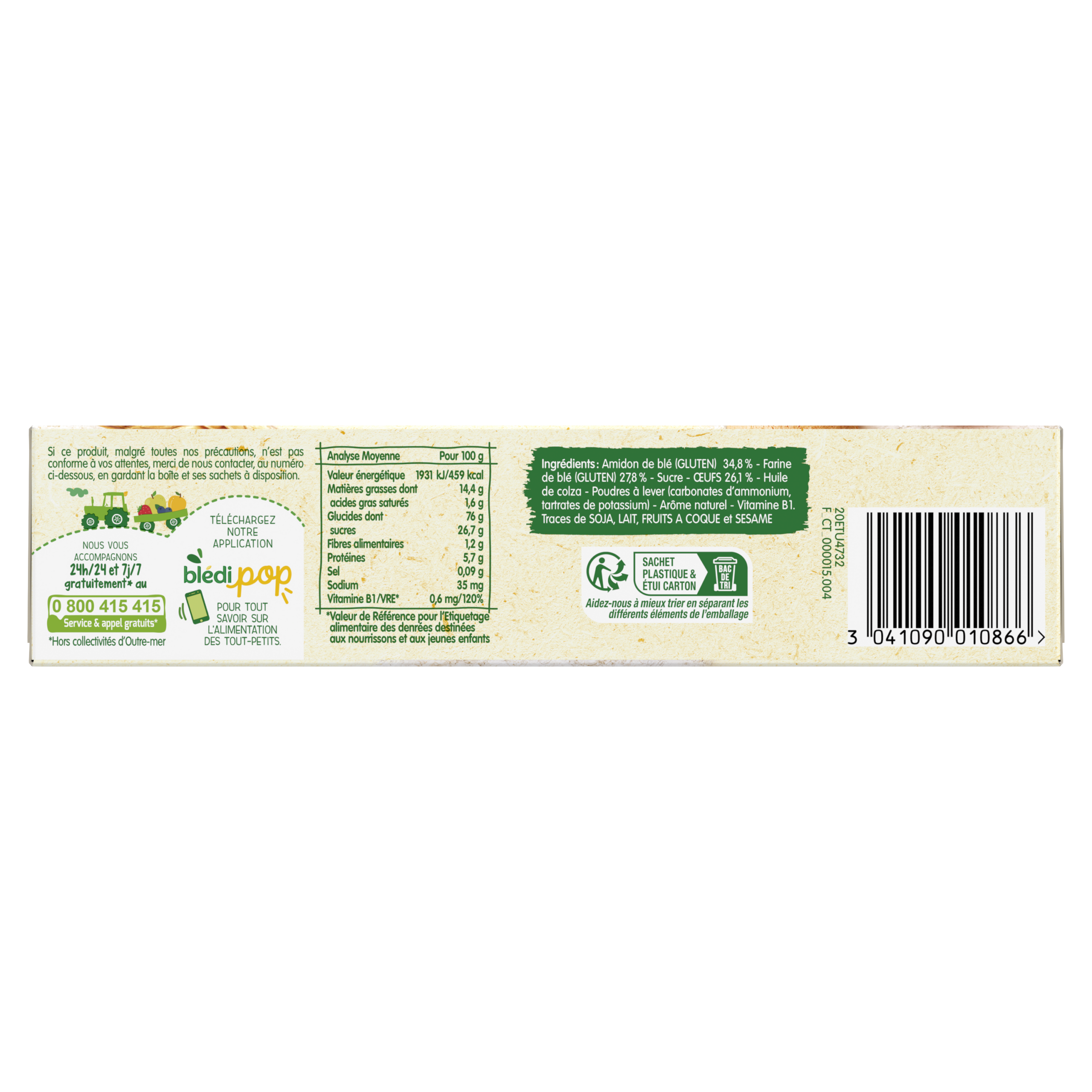 Découvrez Mon 1er Boudoir de Blédina : des biscuits spécialement conçus pour Bébé dès 10 mois (se référer ci-dessous aux détails des informations du produit pour savoir si bébé est prêt), pour un petit-déjeuner ou un goûter gourmand et adapté. Sa texture, croquante puis fondante en bouche, accompagnera bébé dans la découverte de nouvelles textures. Texture croquante puis fondante en bouche Forme idéale pour ses petites mains Format pratique en sachet à emporter partout Lot de 3 packs contenant chacun 6 sachets de 4 biscuits.