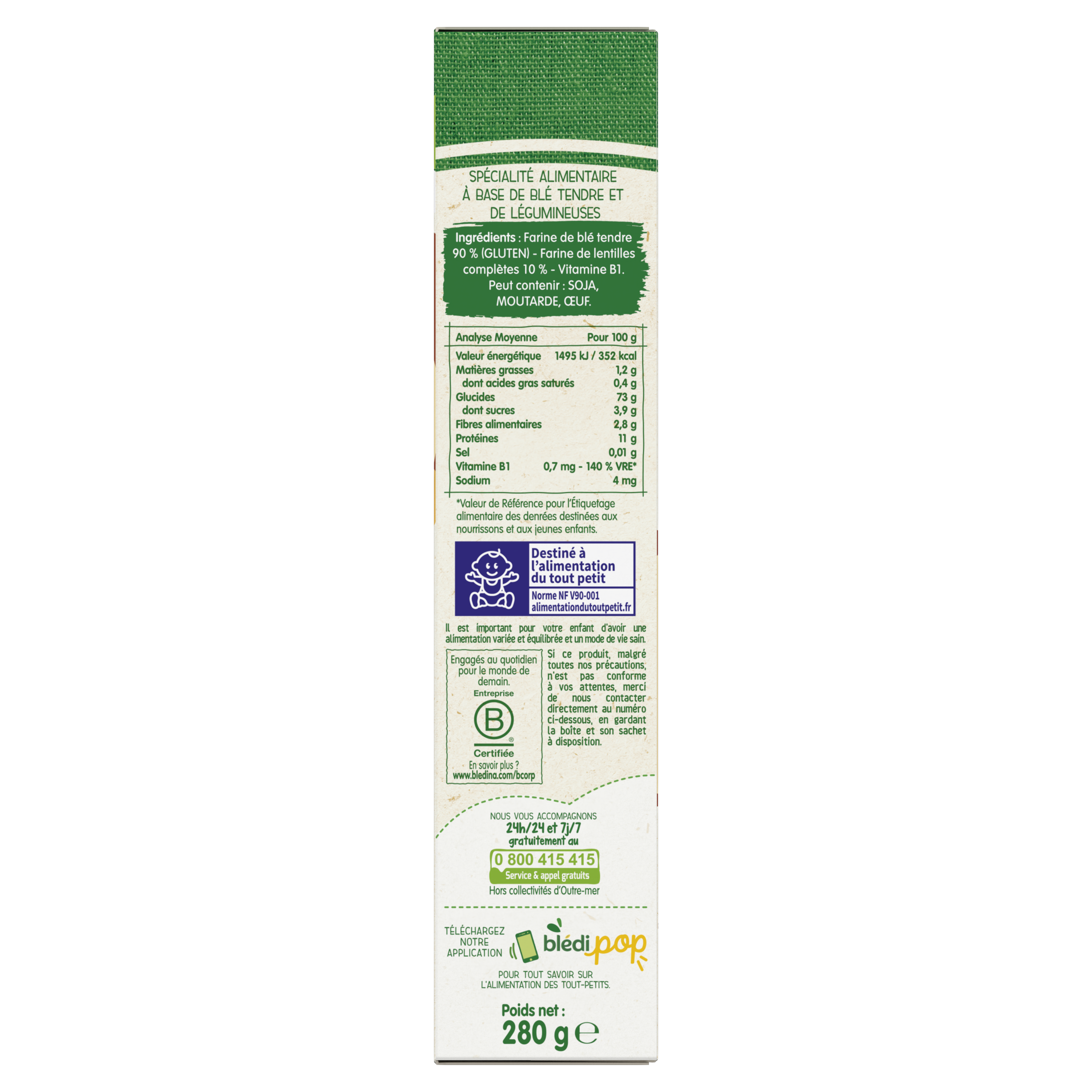 Bledina-Pâtes à dévorer-Blé Lentilles-15m+-280g