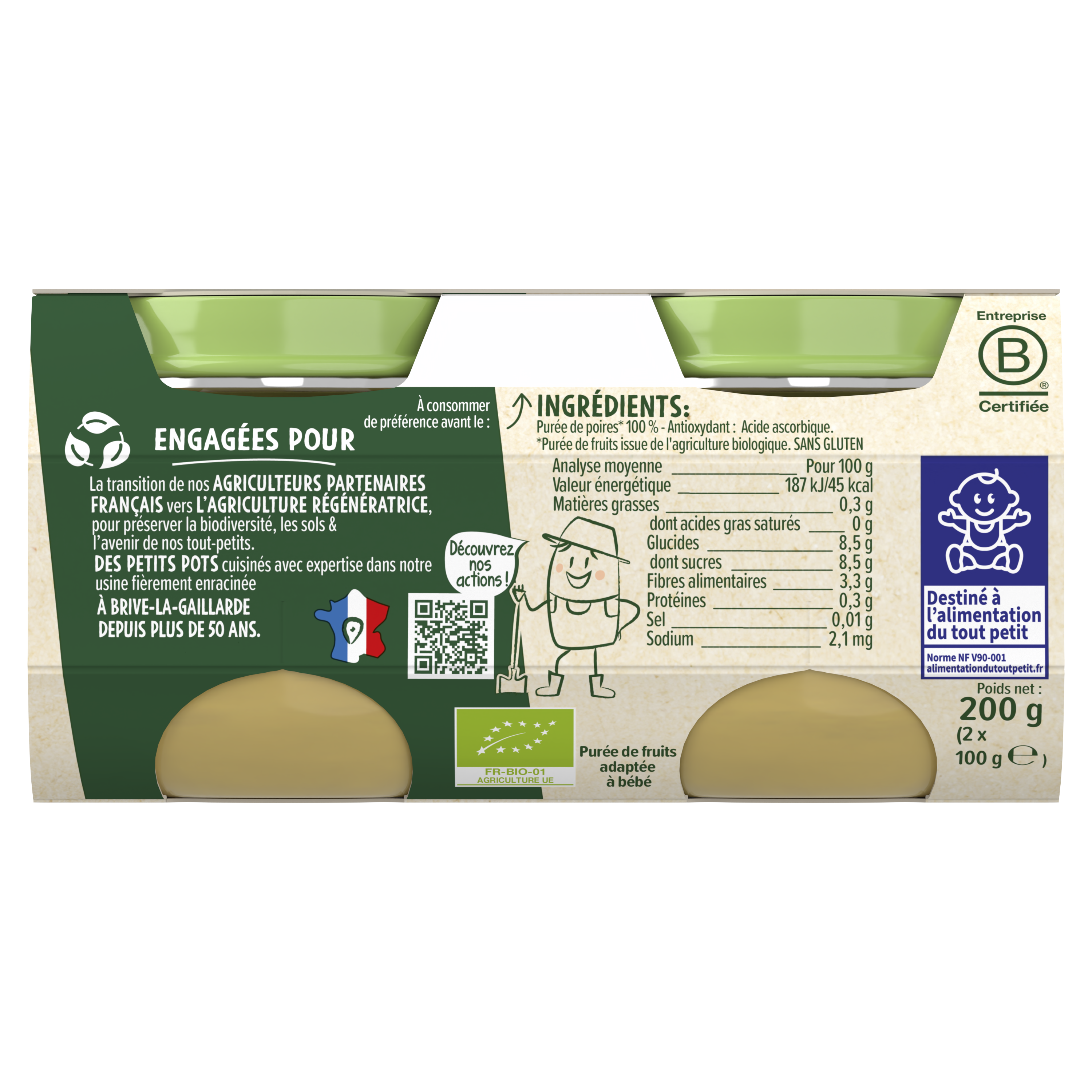 Petits pots - Les Récoltes Bio - Poire - Lot x4