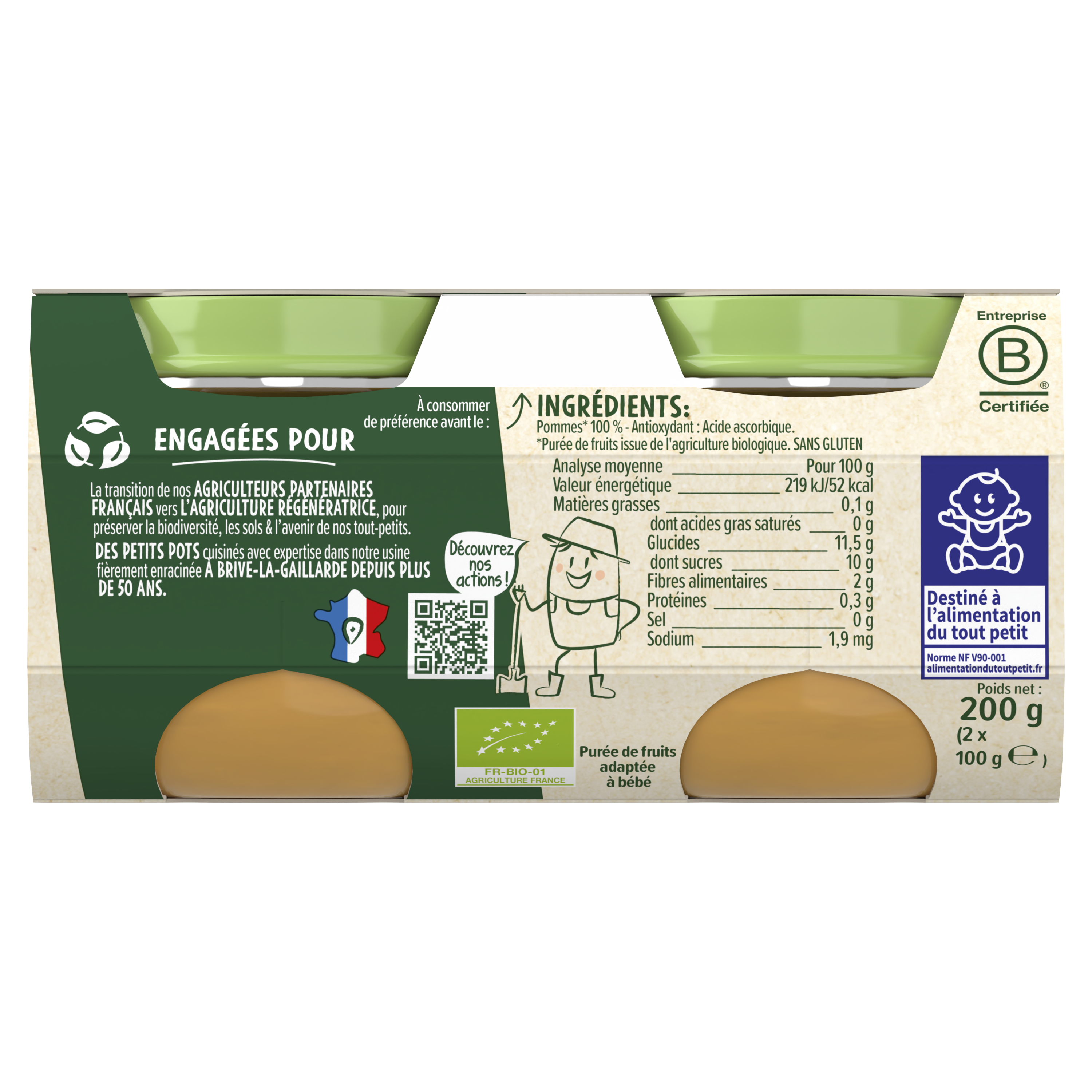 Découvrez les délicieux Petits Pots Les Récoltes Bio, pour faire découvrir à bébé ses premiers fruits tout en douceur, avec une texture lisse et dans un format adapté aux premières cuillères.  ⠀⠀⠀⠀⠀⠀⠀⠀⠀ Lot de 4 packs contenant chacun 2x100g de purée de fruits.