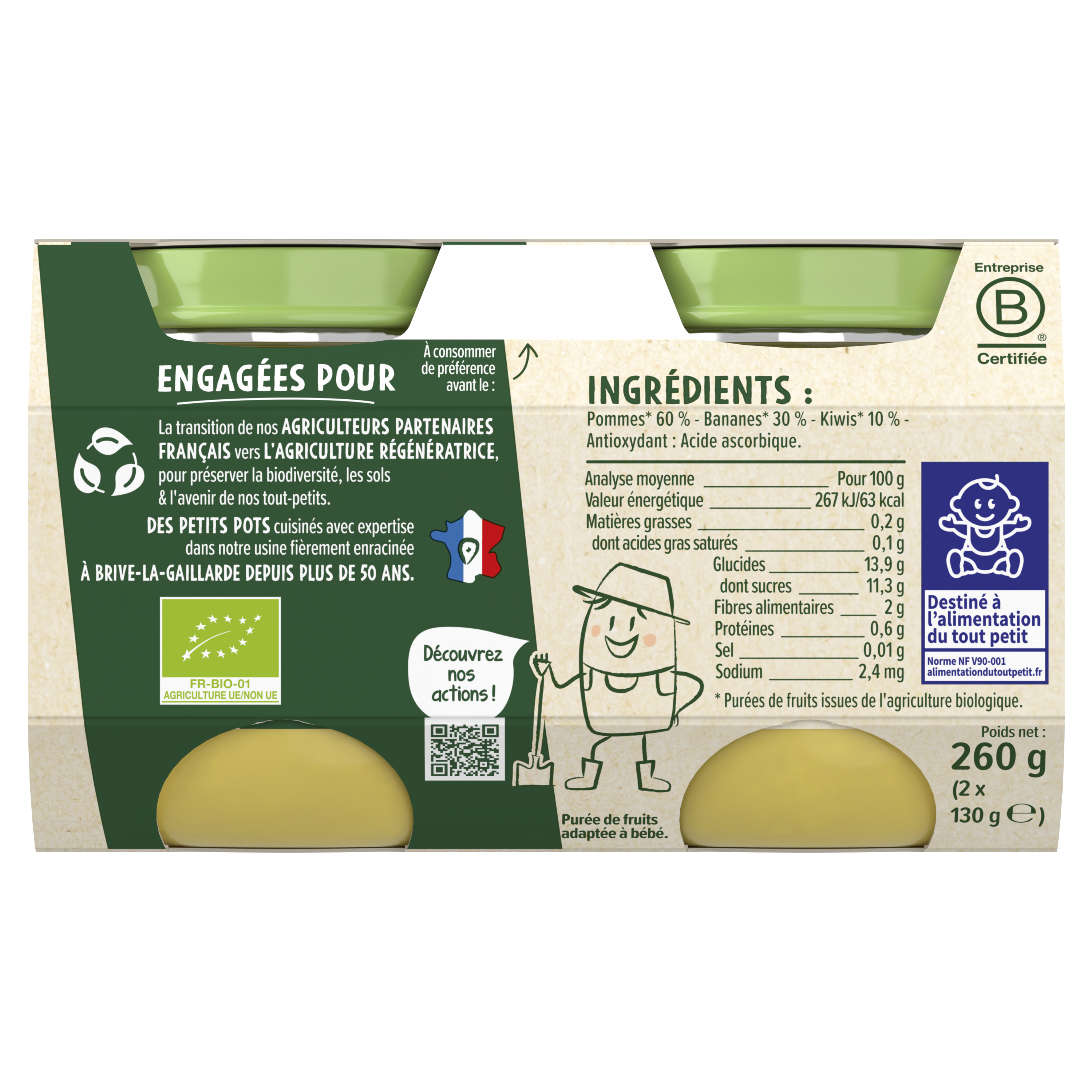 Pots Les Récoltes Bio - Pommes Bananes Kiwi - Lot x 4