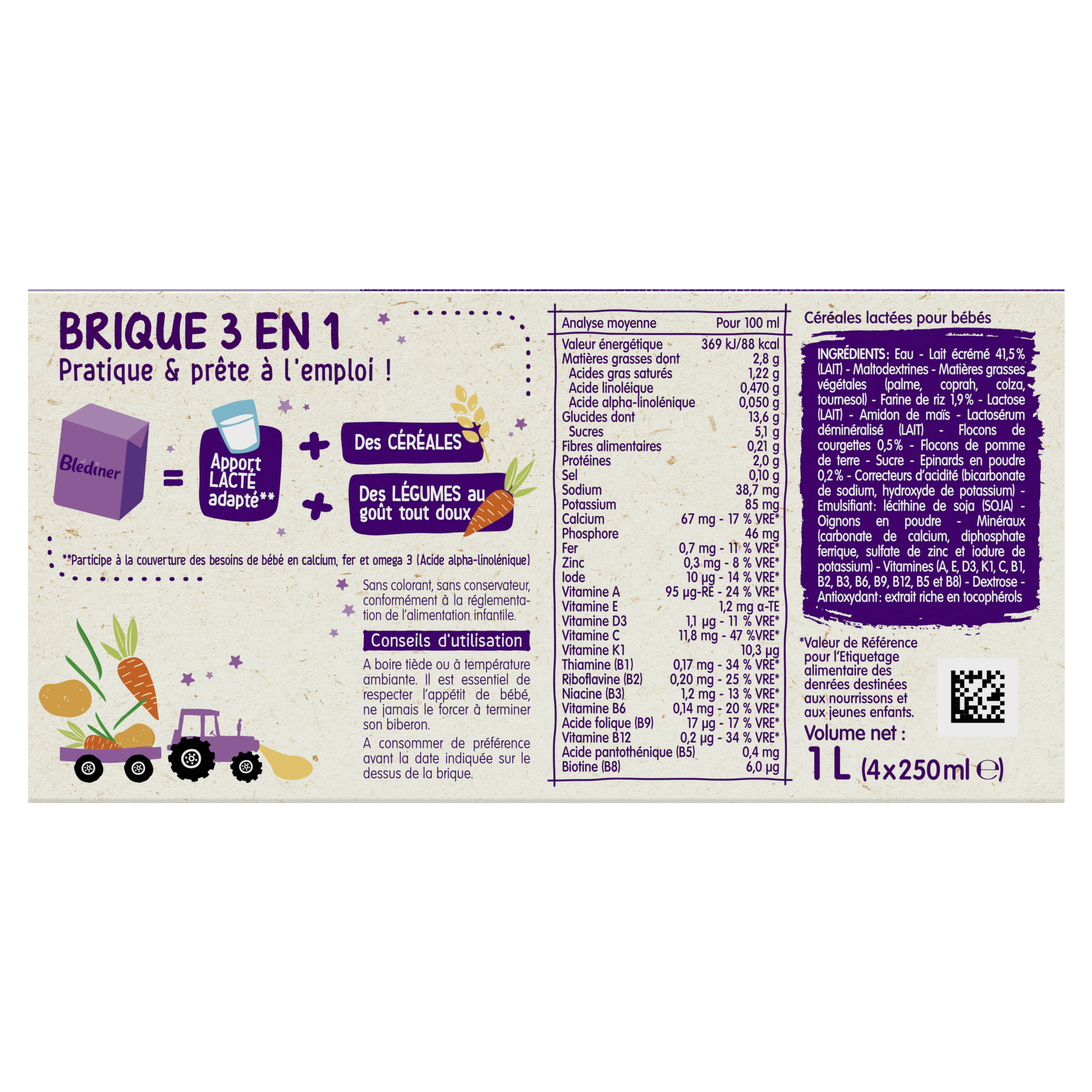 Blédîner Légumes Verts, c’est un savoureux diner complet pour bébé avec un apport lacté adapté2, des céréales et des légumes au goût tout doux ! Et le tout dans un format pratique & prêt à l’usage !