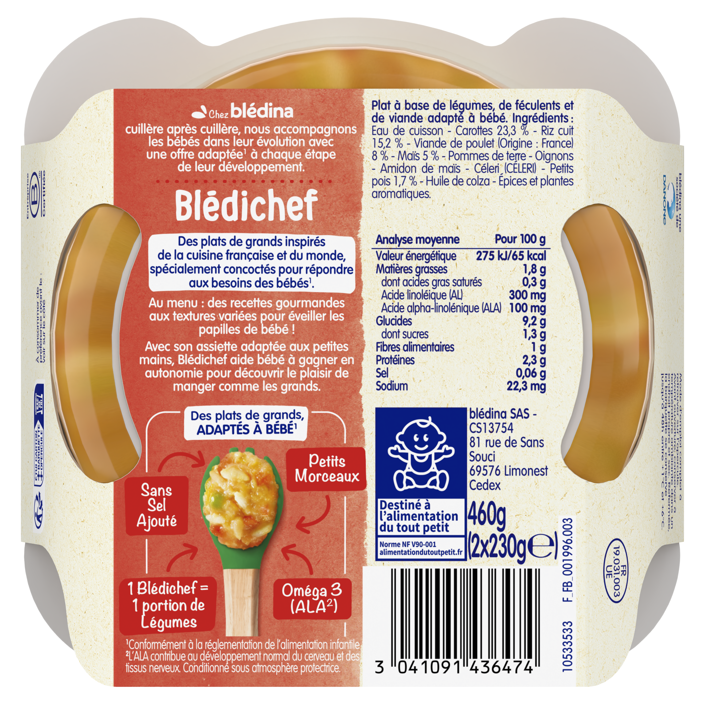 Blédichef - Riz aux Légumes et Poulet - Lot x8