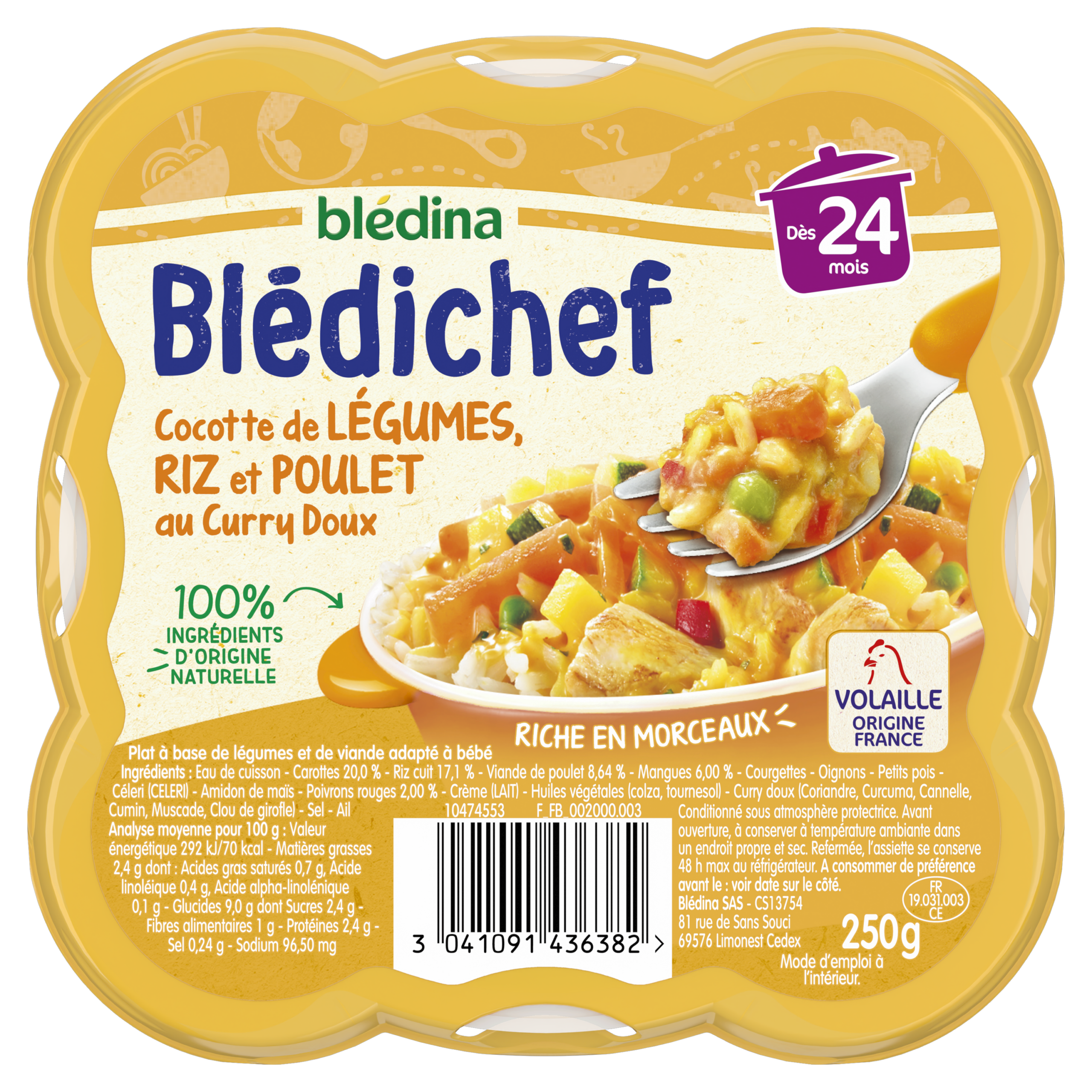 Blédichef - Cocotte de Légumes, Riz et Poulet au Curry Doux - Lot x9