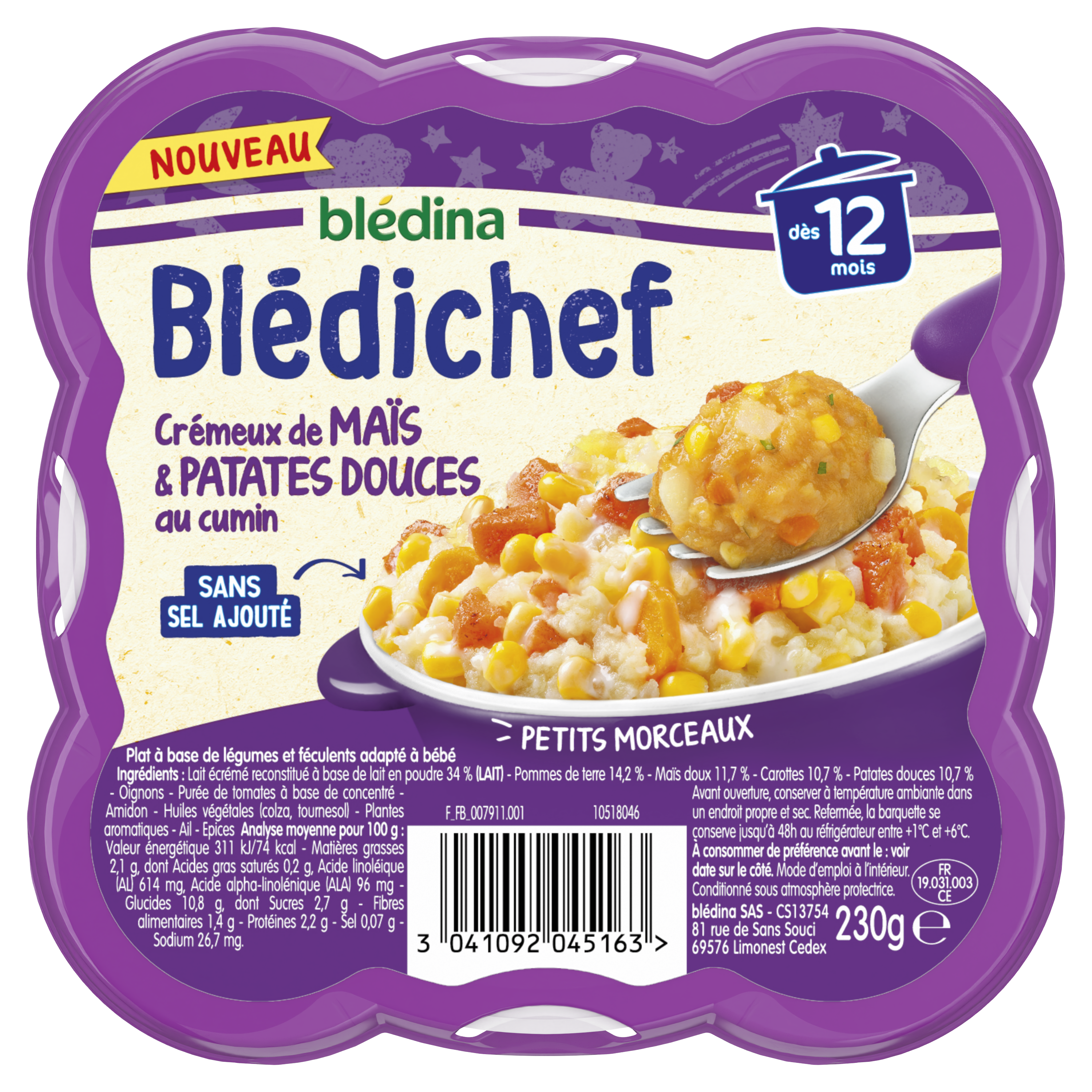 Découvrez les petits plats Blédichef® du soir de Blédina : une large gamme de plats savoureux pour le dîner, spécialement élaborés pour régaler votre bébé en toute sérénité et lui faire découvrir chaque jour de nouvelles saveurs ! ⠀⠀⠀⠀⠀⠀⠀⠀⠀ Ce petit plat du soir végétal et gourmand avec de la patate douce est adapté à bébé à partir de 12 mois ! Cette nouvelle recette spécialement élaborée avec des petits morceaux et des ingrédients 100% d'origine naturelle lui permettra de découvrir une nouvelle association de saveurs, sans sel ajouté ! ⠀⠀⠀⠀⠀⠀⠀⠀⠀