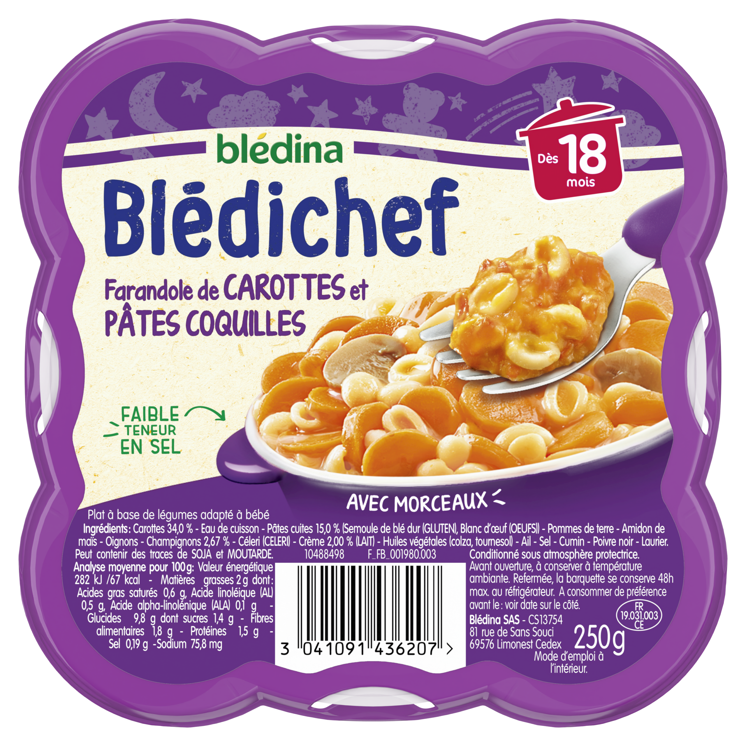 Découvrez les petits plats Blédichef® du soir de Blédina : une large gamme de plats savoureux pour le dîner, spécialement élaborés pour régaler votre bébé en toute sérénité et lui faire découvrir chaque jour de nouvelles saveurs ! Ce petit plat Blédichef®, avec des morceaux, est adapté à bébé à partir de 18 mois.