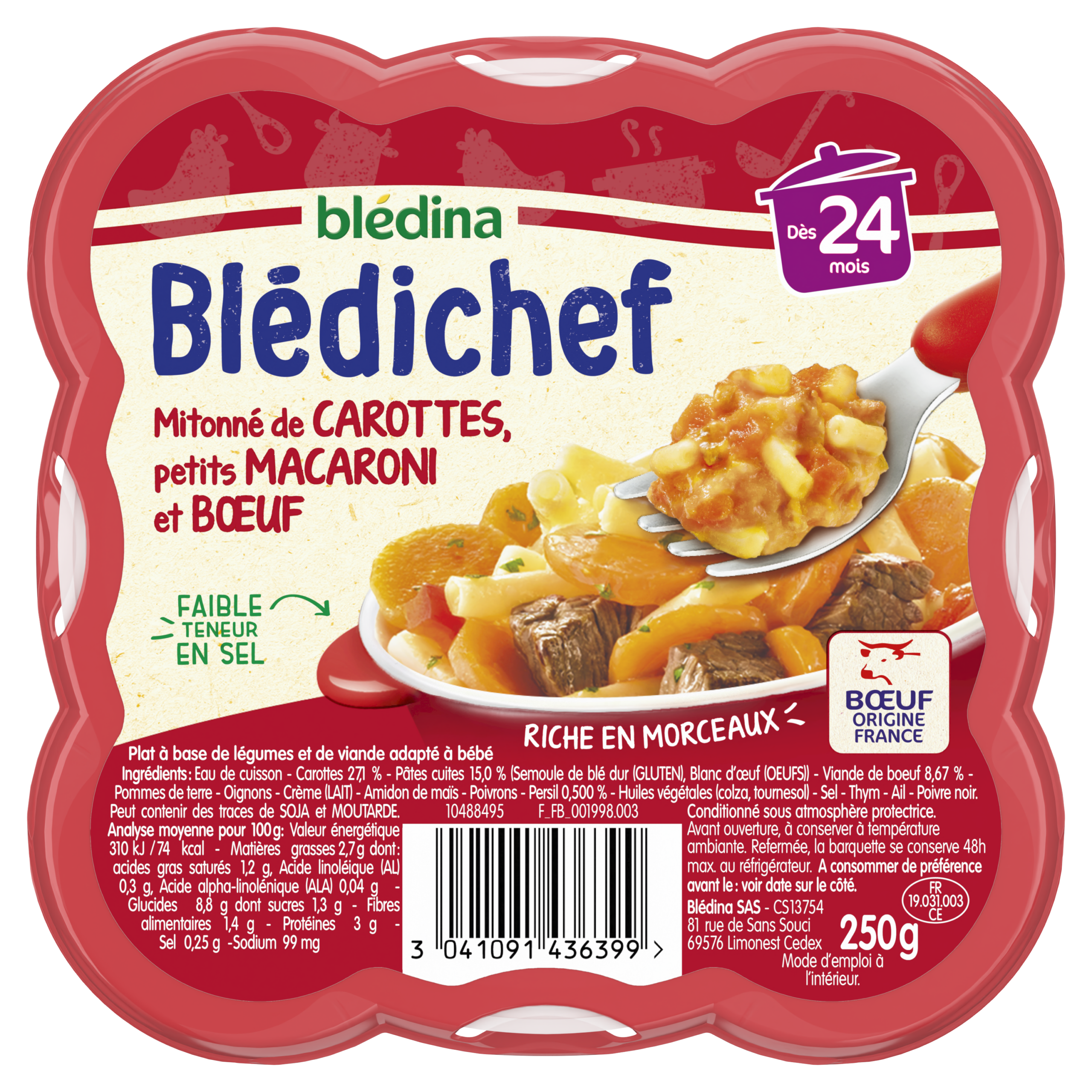 Blédichef - Mitonné de carottes, petits macaroni et bœuf - Lot x9