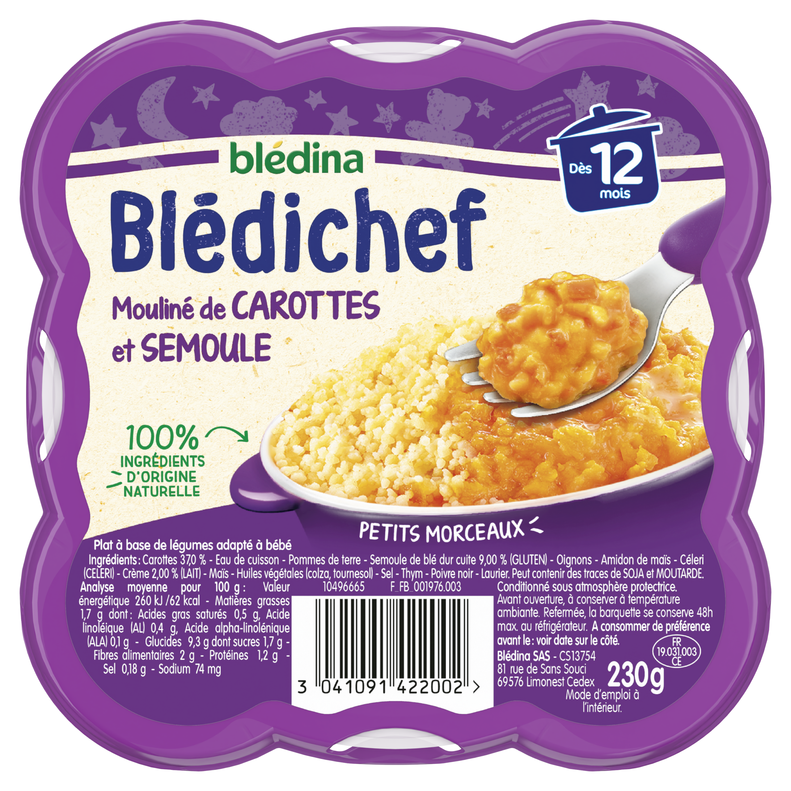 Blédichef - Mouliné de carottes et semoule - Lot x9
