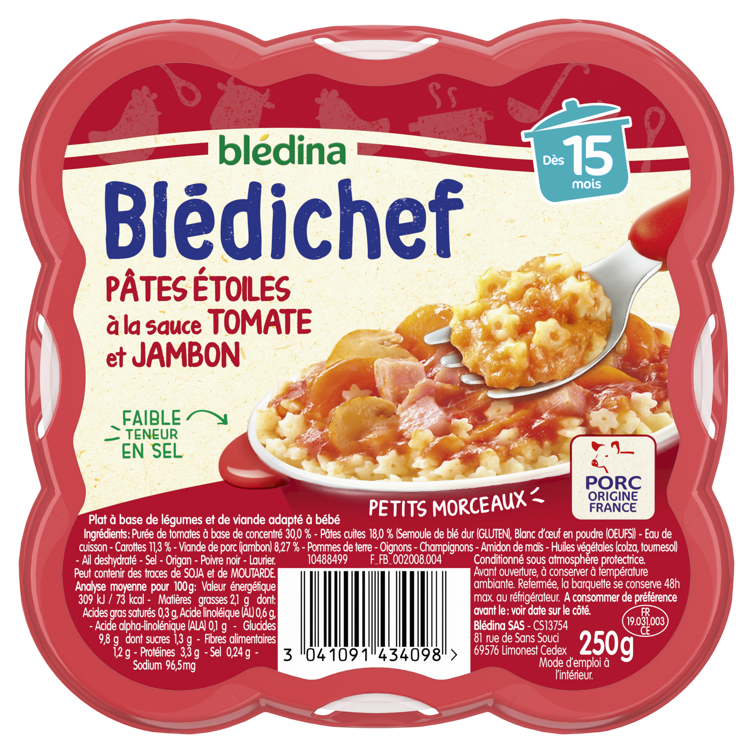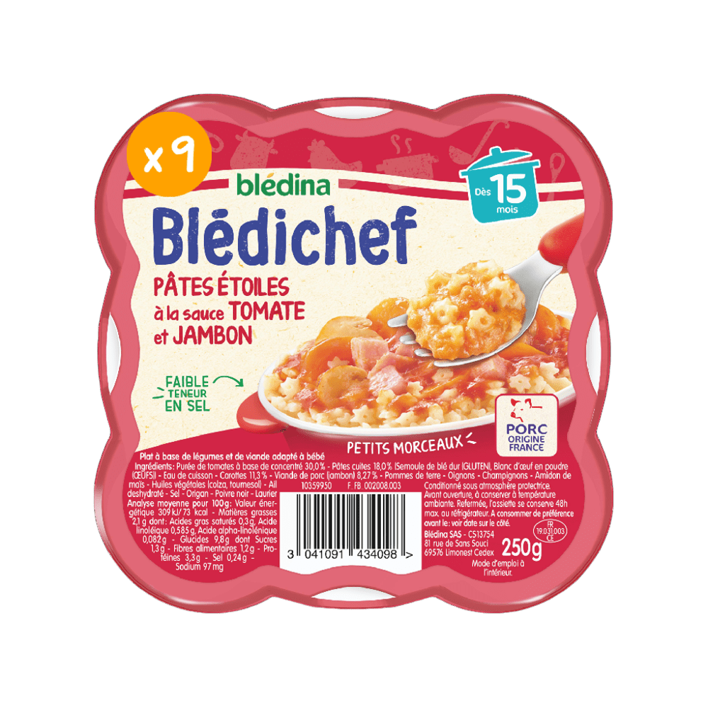 Blédichef - Pâtes étoiles sauce tomate et jambon - Lot x9
