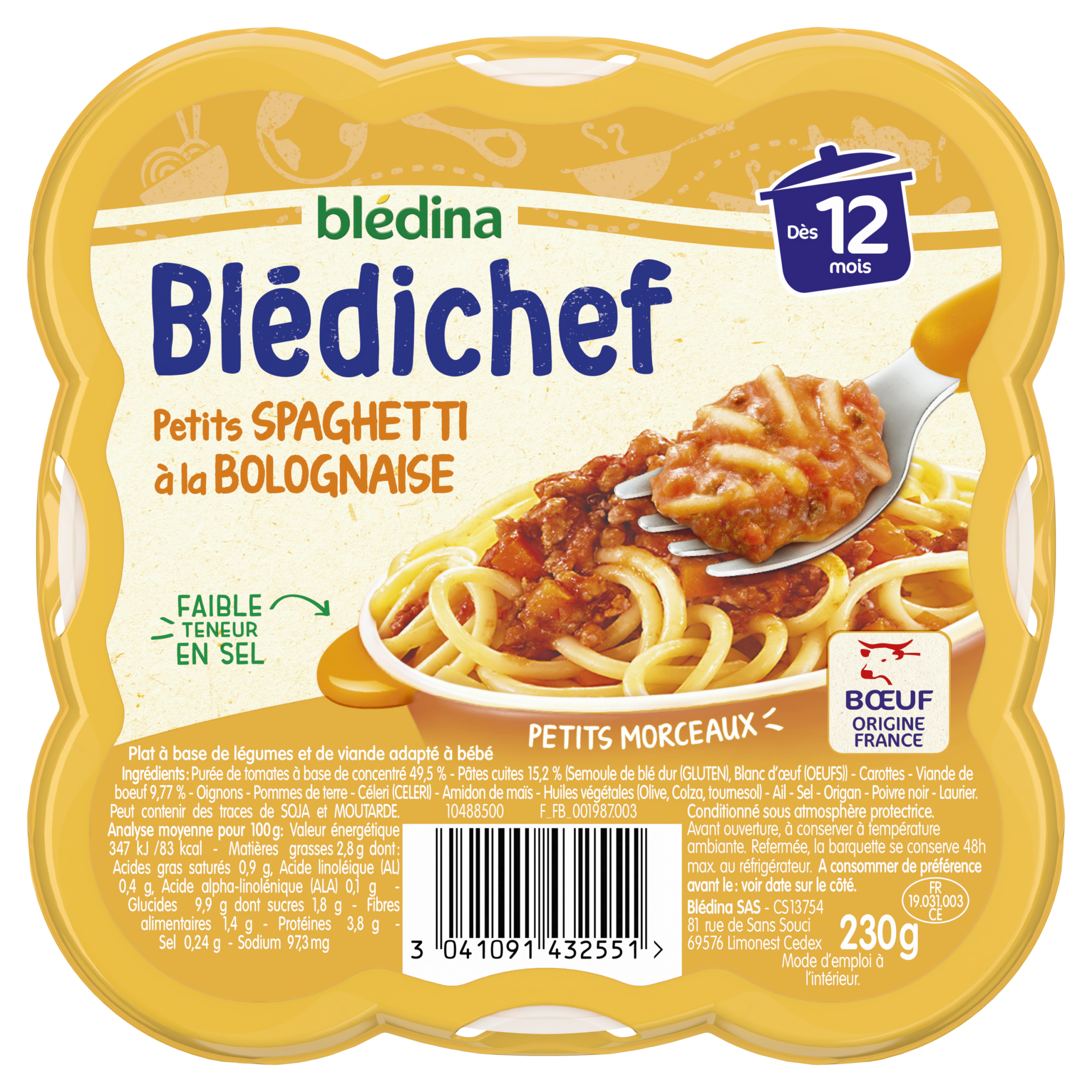 Découvrez les petits plats Blédichef® de Blédina : une large gamme de plats savoureux pour le déjeuner et le dîner, spécialement élaborés pour régaler votre bébé en toute sérénité et lui faire découvrir chaque jour de nouvelles saveurs ! Ce petit plat Blédichef®, avec des petits morceaux, est adapté à bébé à partir de 12 mois. Faible teneur en sel
