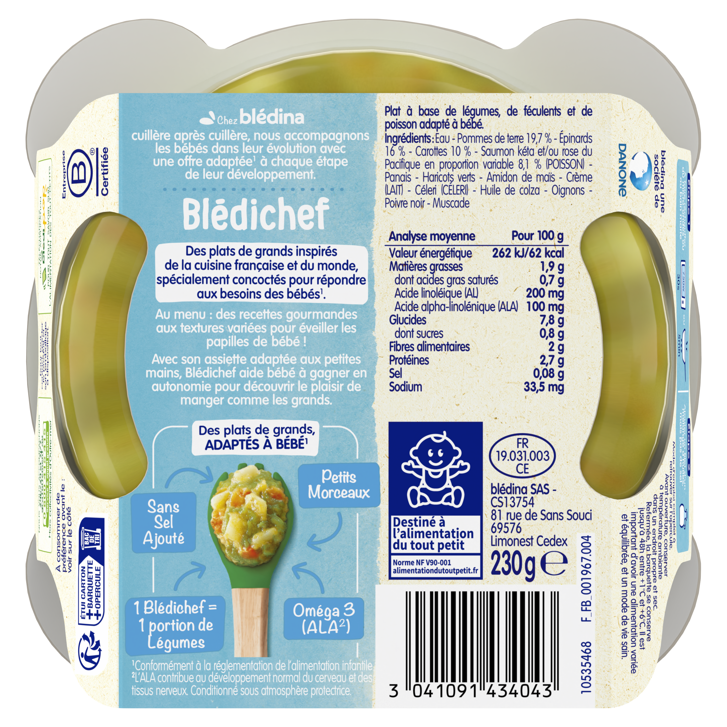 Blédichef - Purée épinards et saumon du Pacifique - Lot x9