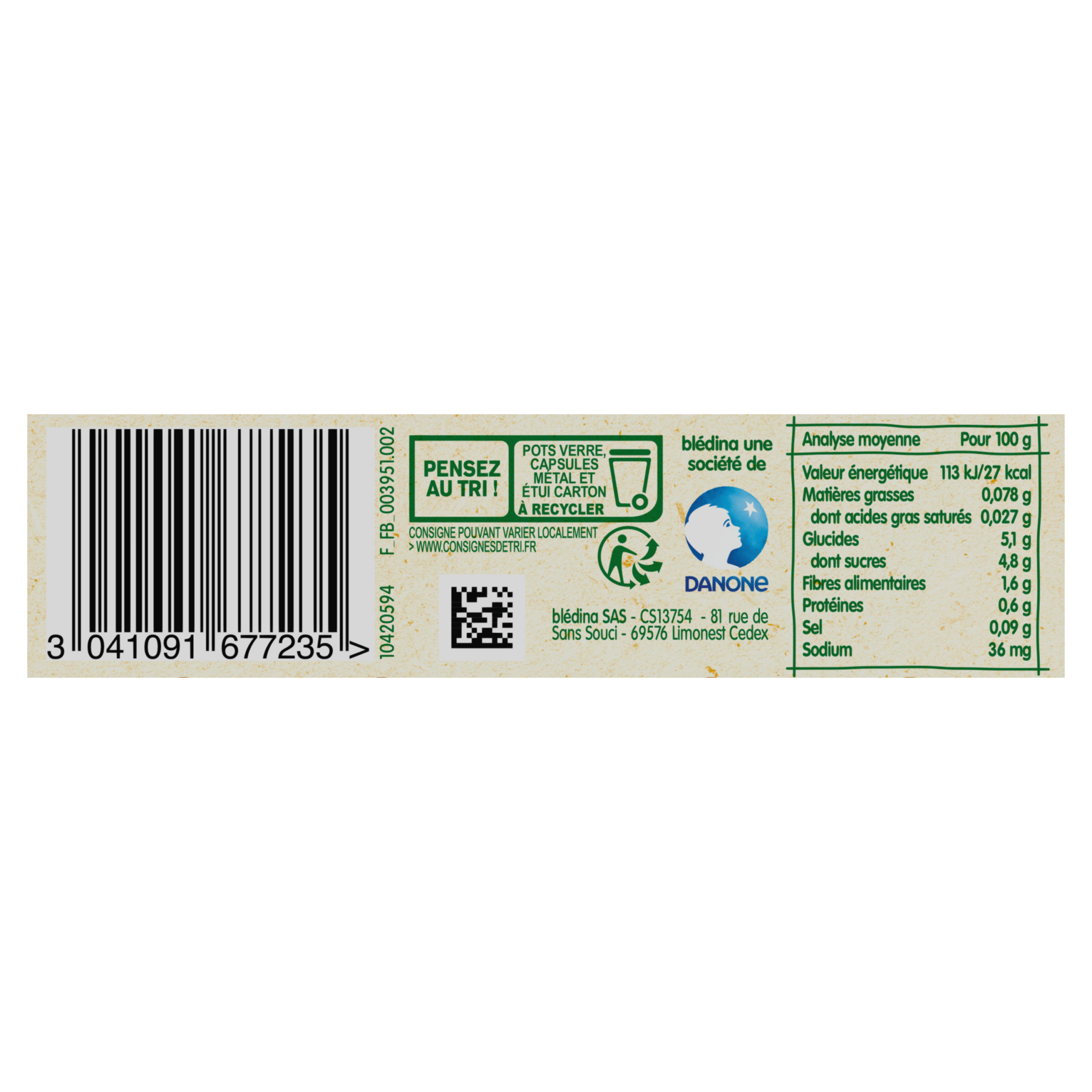 • 16 1er petits pots pour 8 mono-saveurs (Carottes, Petits Pois, Artichauts, Epinards, Haricots Verts, Pommes, Poires, Bananes)