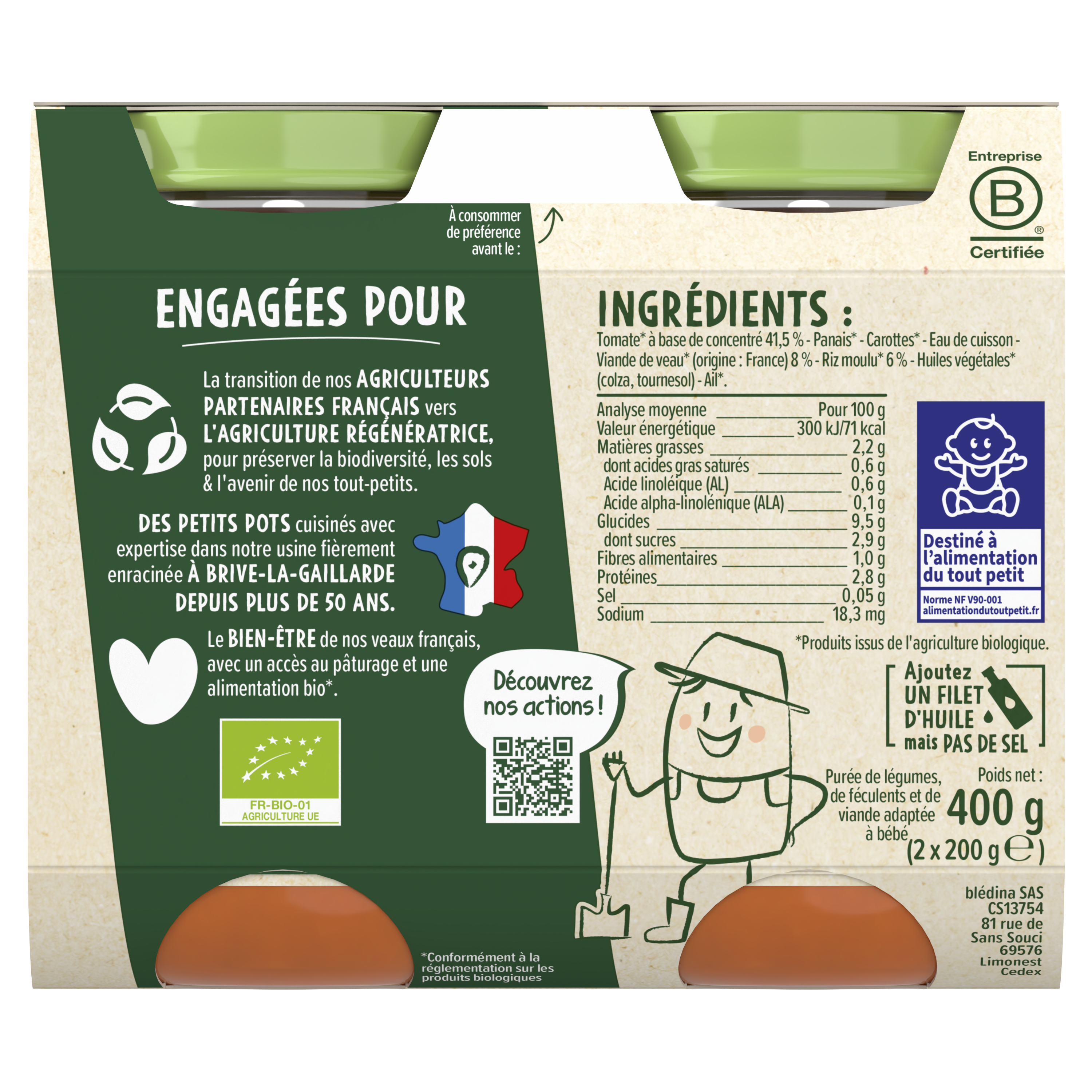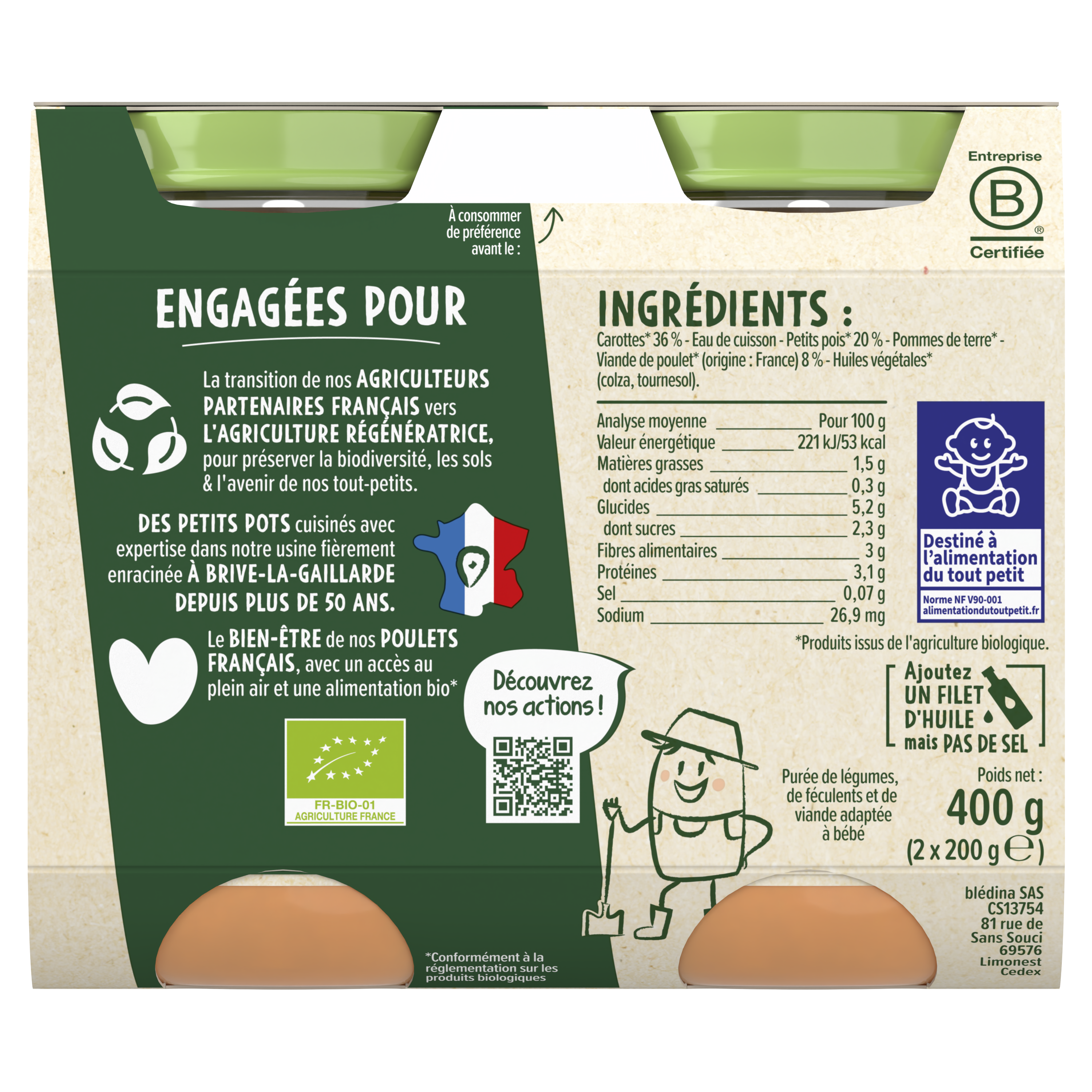 Découvrez nos pots Les récoltes Bio, de délicieuses purées pour faire découvrir à bébé ses premières recettes de légumes accompagnées de Poulet ou de Veau. A déguster dès 6 mois. ⠀⠀⠀⠀⠀⠀ Ce lot contient 8 pots de 200g chacun: 2x Les récoltes Bio - Purée de Courgettes, Poulet et Thym 2x Les récoltes Bio - Carottes, Petits Pois et Poulet 2 x Les récoltes Bio - Brocolis, Pommes de Terre et Veau 2 x Les récoltes Bio - Tomates, Riz et Veau