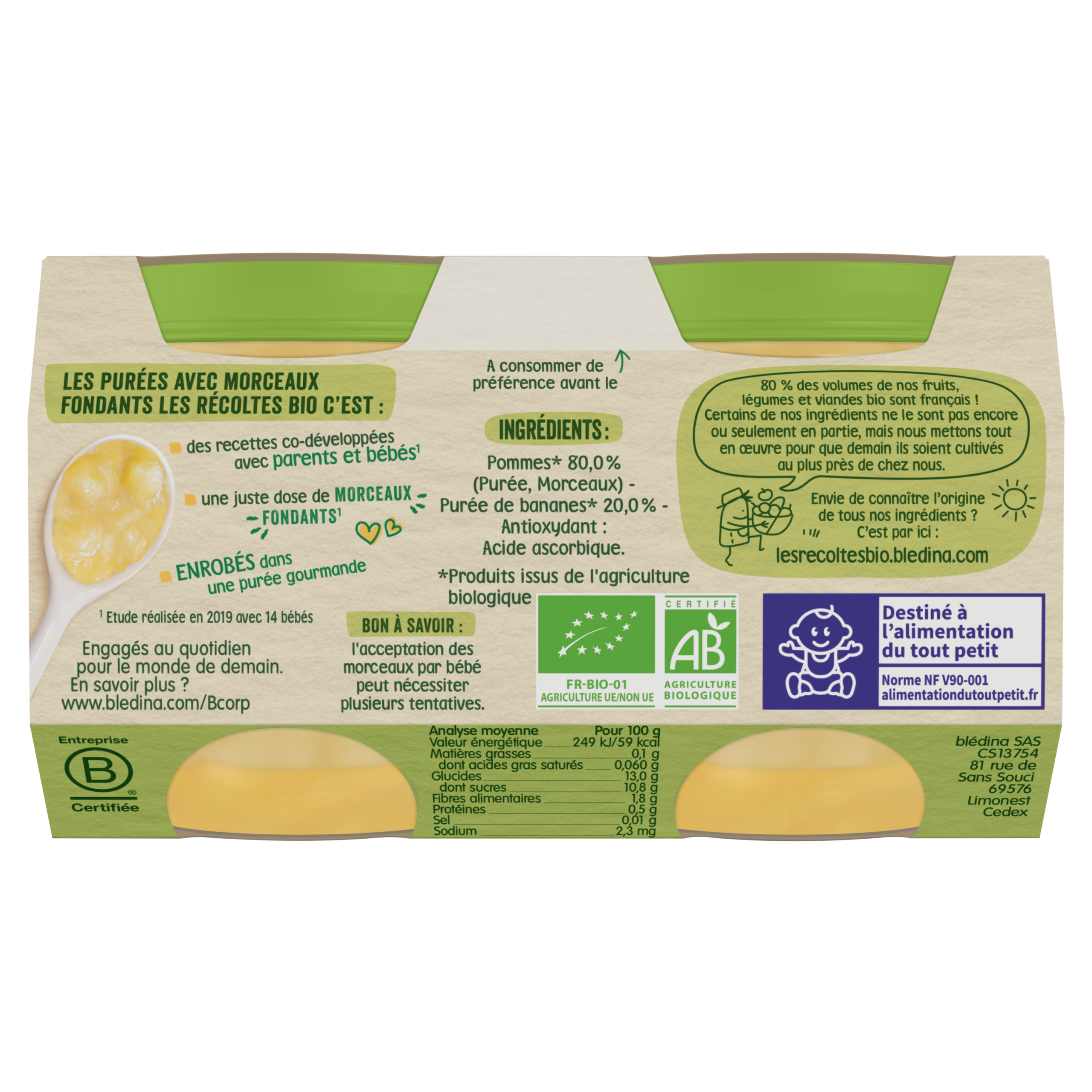 Blédina-Les récoltes bio-Apple and Banana-8m+-2 x 130 g
